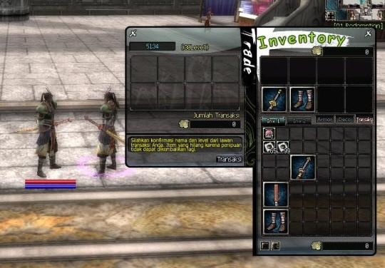 - Tahan tombol shift dan arahkan kursor mouse kepada karakter pemain yang ingin diajak untuk transaksi, kemudian gambar kursor akan berubah menjadi bentuk bibir. Kemudian klik “Transaksi” dan menu transaksi akan muncul.